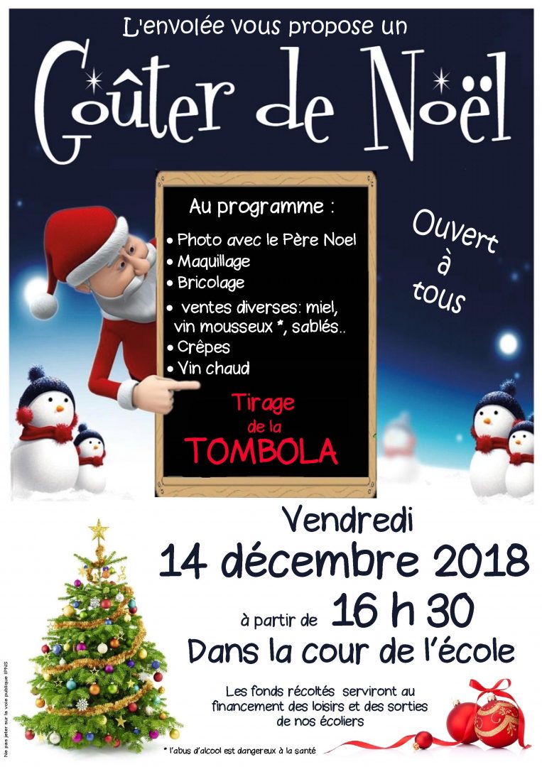 On vous donne tous rendez-vous le 14 décembre à partir de 16h30 dans le cour de l’école pour le goûter de Noel de l’Envolée. Vous pourrez faire quelques achats (Sablés, Miel, Vins Mousseux “proches de Cerdon”*, Bieres*, …).