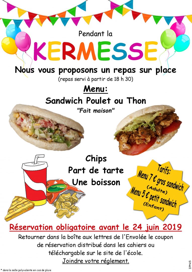 Cette année nous vous proposons de prolonger la kermesse par un repas. Pour des raisons de logistique, seuls les repas préalablement réservés et payés seront servis.