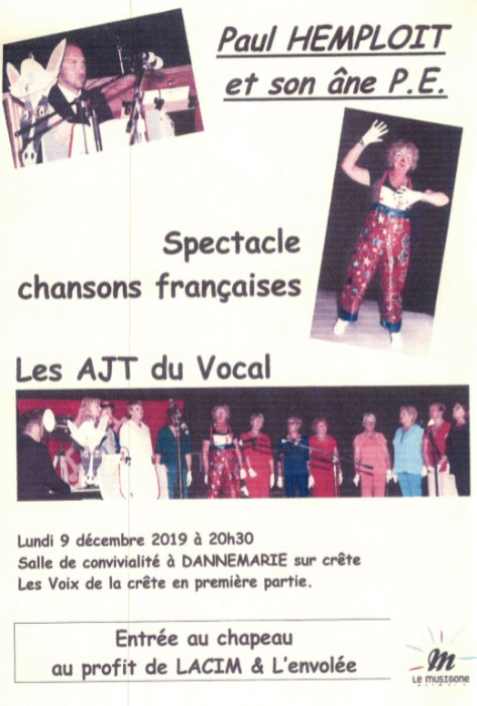Lundi 9 Décembre 2019 – Spectacle Chansons françaises au profit de l’Envolée
