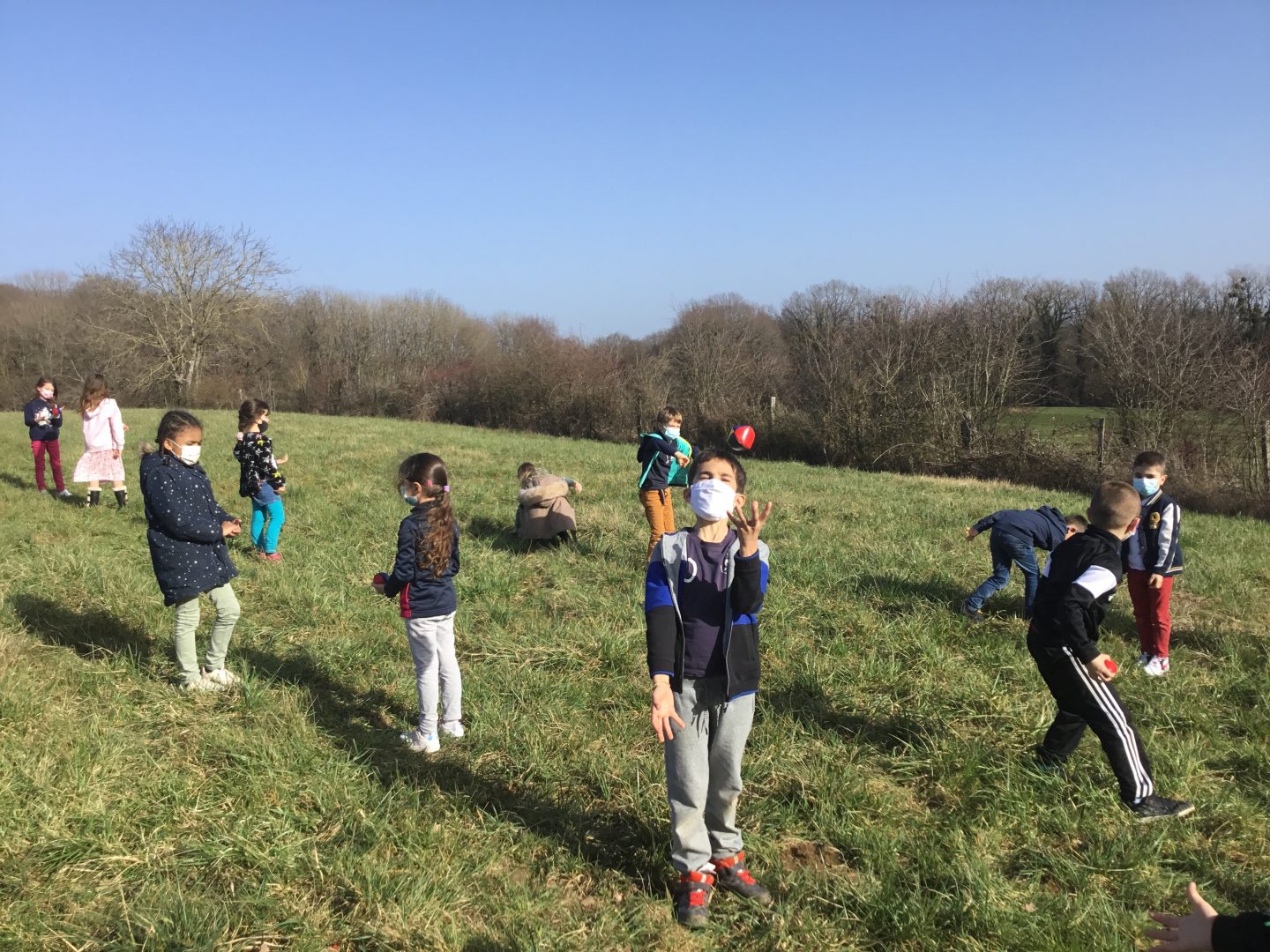 Début février, nous avons profité du beau temps pour aller jongler dans la nature sur la crête du village de notre école : Dannemarie sur crête.