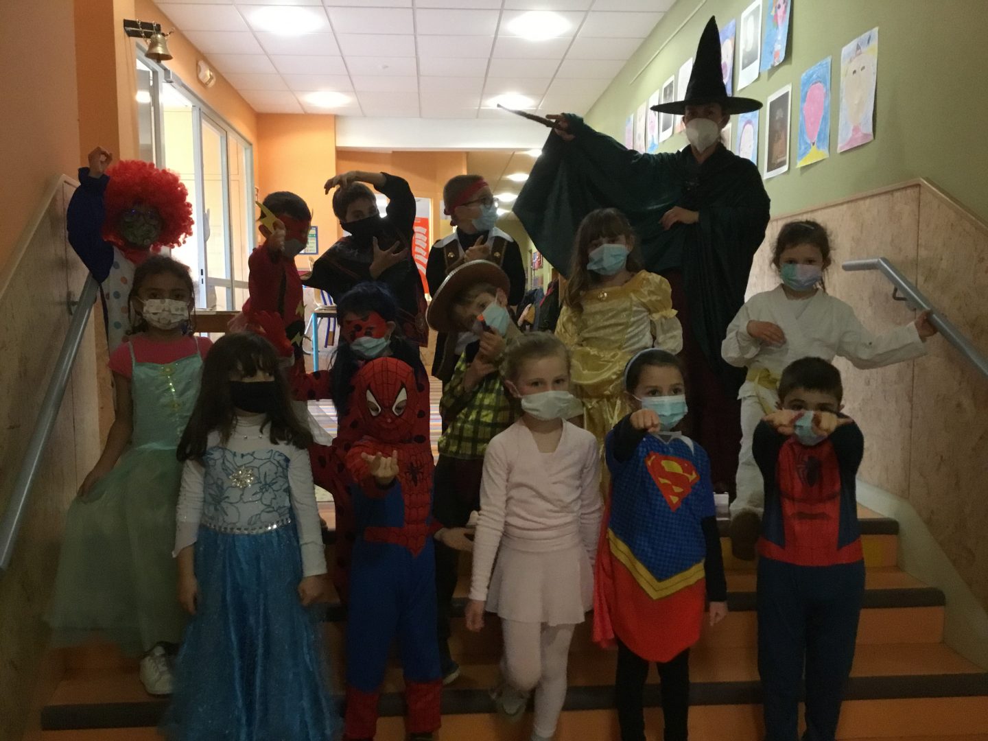 Nous avons fêté carnaval. Nous avons défilé dans les rues du village, nous sommes allés voir les élèves de maternelle dans leur cours, puis nous avons aimé traverser les classes de CM1 CM2.
