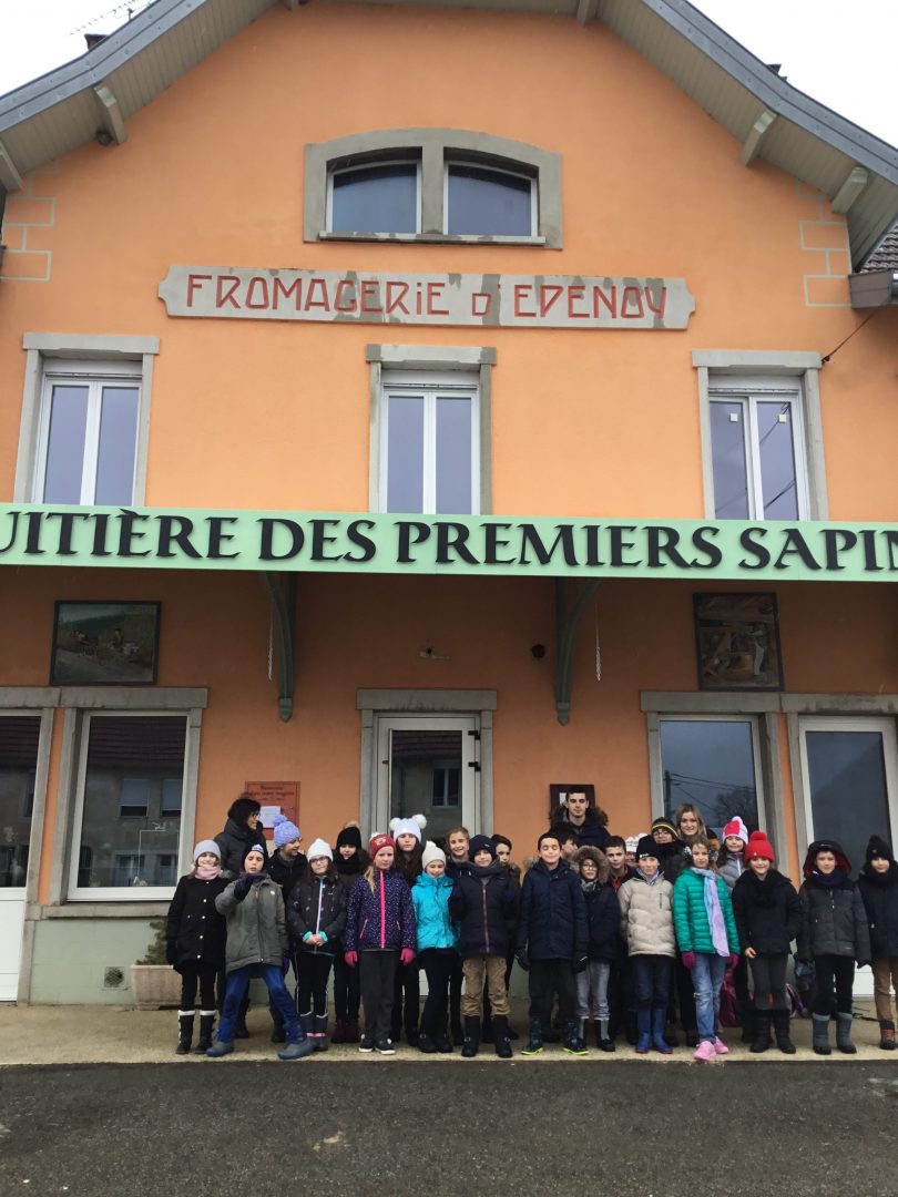 Le Jeudi 7 Février 2019 nous sommes allés à la fromagerie d’Épenoy dans le Doubs. Nous avons vu comment on fabriquait le fromage (le comté) .Il y a 5 bacs de 50 000L chacun après ils chauffent à environ 100°C-150°C en se faisant remuer pendant 20 min puis ils évacuent le liquide pour le presser pendant une journée.Après les meules de comté vont dans des caves où ils restent environ 1 mois.Puis ils vont dans des caves à Poligny .