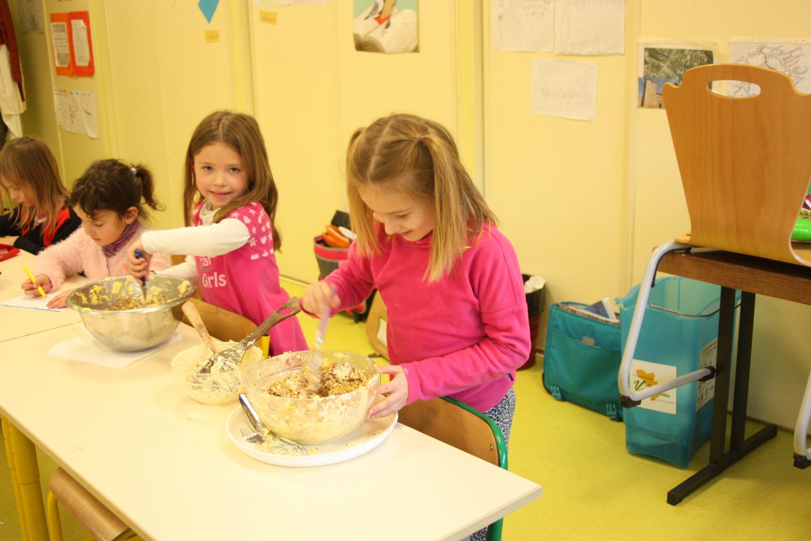 Avec l’hiver rigoureux, nos petits animaux à plumes ont faim. Nous avons confectionné des boules de graisse que nous avons emportées chez nous pour les suspendre dans le jardin.