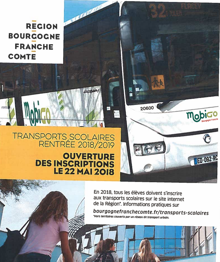 Les modalités d’inscription aux transports scolaires sur le site de la Région Bourgogne-Franche-Comté NE CONCERNENT PAS notre école.